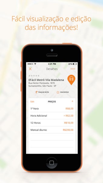 Além de tudo isso você pode favoritar estacionamentos e avaliá-los. Em ambos os casos você precisa criar uma conta no serviço. O cadastro também serve para ajudar a atualizar os dados do aplicativo.